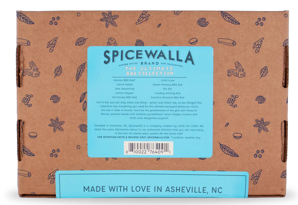 Includes: Korean BBQ Rub, Carne Asada Rub, Jerk Seasoning, Lemon Pepper Seasoning, Hot Honey BBQ Rub, Chilli Lime, Sweet Hickory BBQ Rub, Piri Piri, Cowboy Grilling Rub, Carolina Mustard BBQ Rub