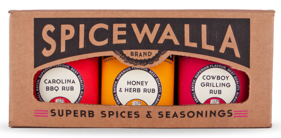 Carolina BBQ rub: Yellow Mustard Powder, Light Chilli Powder (Chili pepper, paprika, oregano, cumin, garlic, salt & spices), Kosher Salt, Brown Sugar, Smoked Paprika, Black Pepper, Cane Sugar, Apple Cider Vinegar Powder (maltodextrin, apple cider vinegar, food-starch modified), Garlic, Onion, Celery Seed, Cayenne