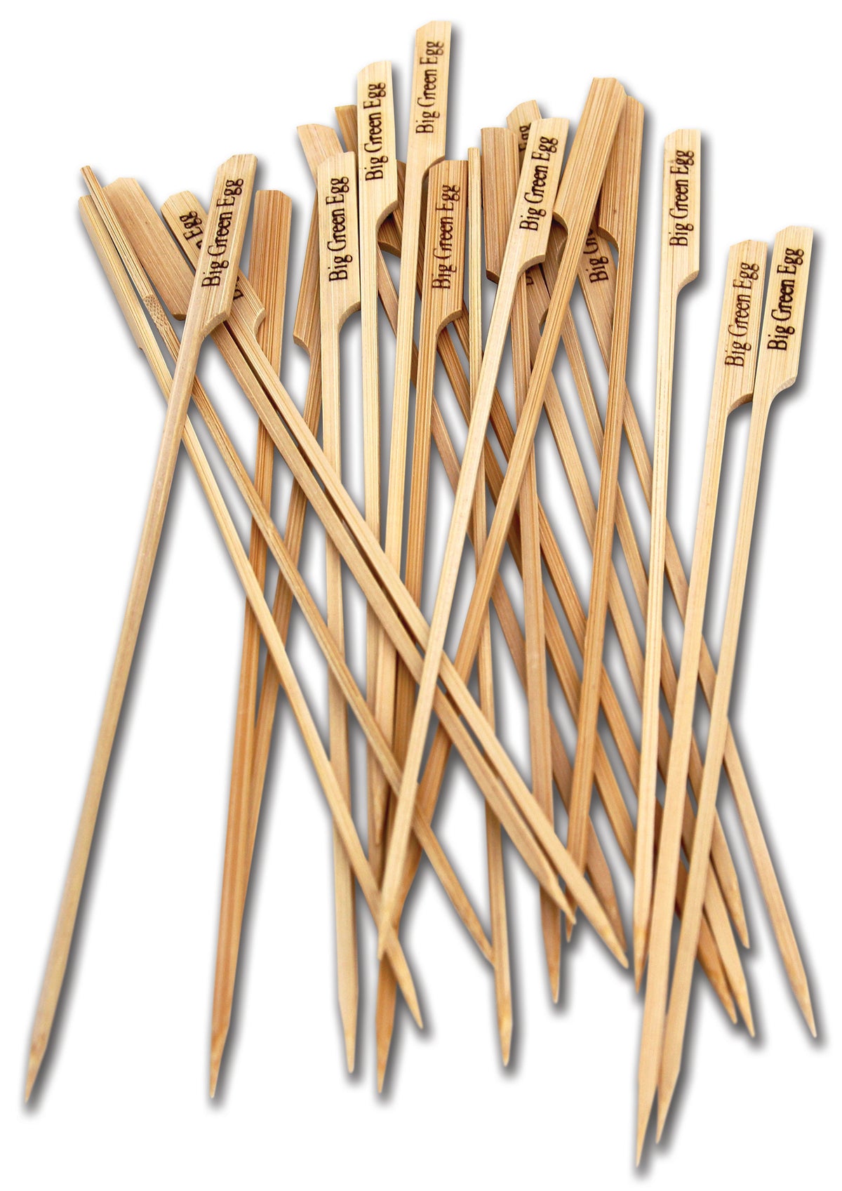 These 10 in/25 cm All Natural, Eco-Friendly Bamboo Skewers are perfect for grilling and serving kabobs or chunks of chicken, meats, shrimp or vegetables. Add a festive touch when serving appetizers, cheese, sandwiches and more ... each skewer has a Big Green Egg logo on an easy-grip handle. 25 skewers per pack