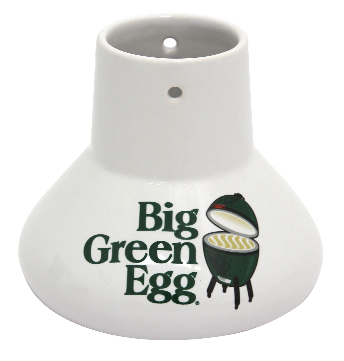 Ceramic Chicken Roaster - Using a vertical roaster on the EGG will produce the juiciest, most flavorful poultry you’ve ever tasted! Vertical roasters hold a chicken or turkey upright during cooking for even browning and easier carving when done. The ceramic roasters hold liquid such as fruit juice or beer to add flavor to the poultry. For 2XLarge, XLarge, Large, Medium, and Small EGGs