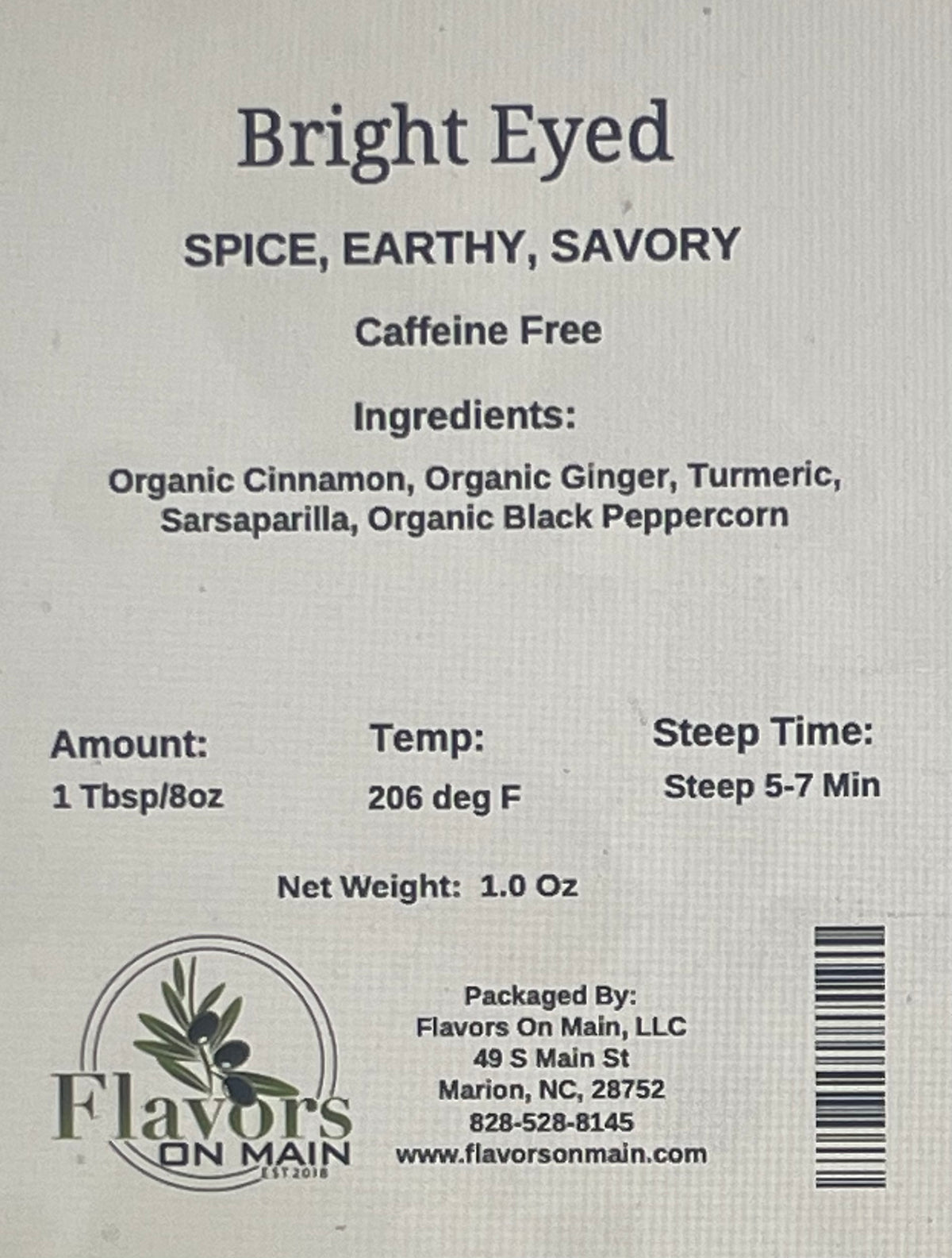 Ingredients: Organic Cinnamon, Organic Ginger, Organic Turmeric, Sarsaparilla, Organic Black Peppercorn