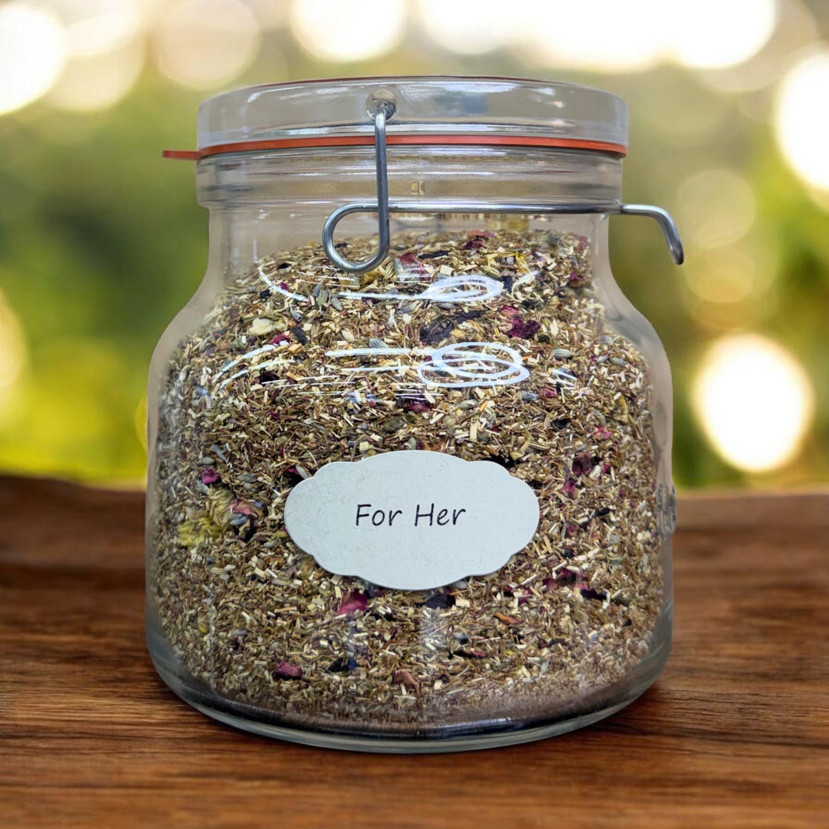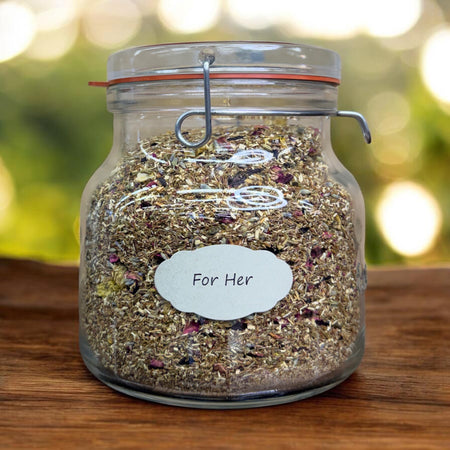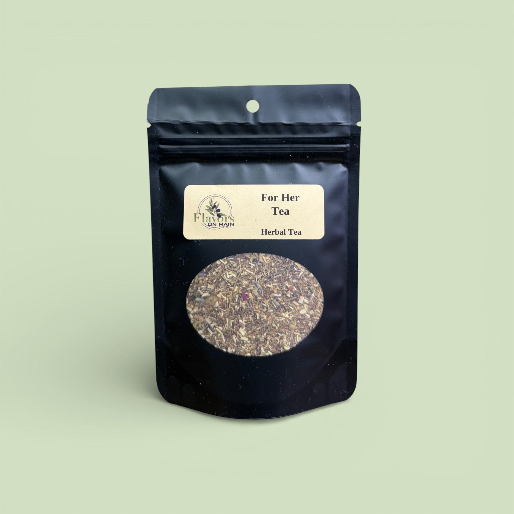 For Her Tea is a gentle, caffeine-free herbal blend with a soft, floral flavor. It combines herbs and flowers like rooibos, hibiscus, rose, and lavender to create a smooth, calming cup that’s subtly sweet and soothing—perfect for a relaxing moment.