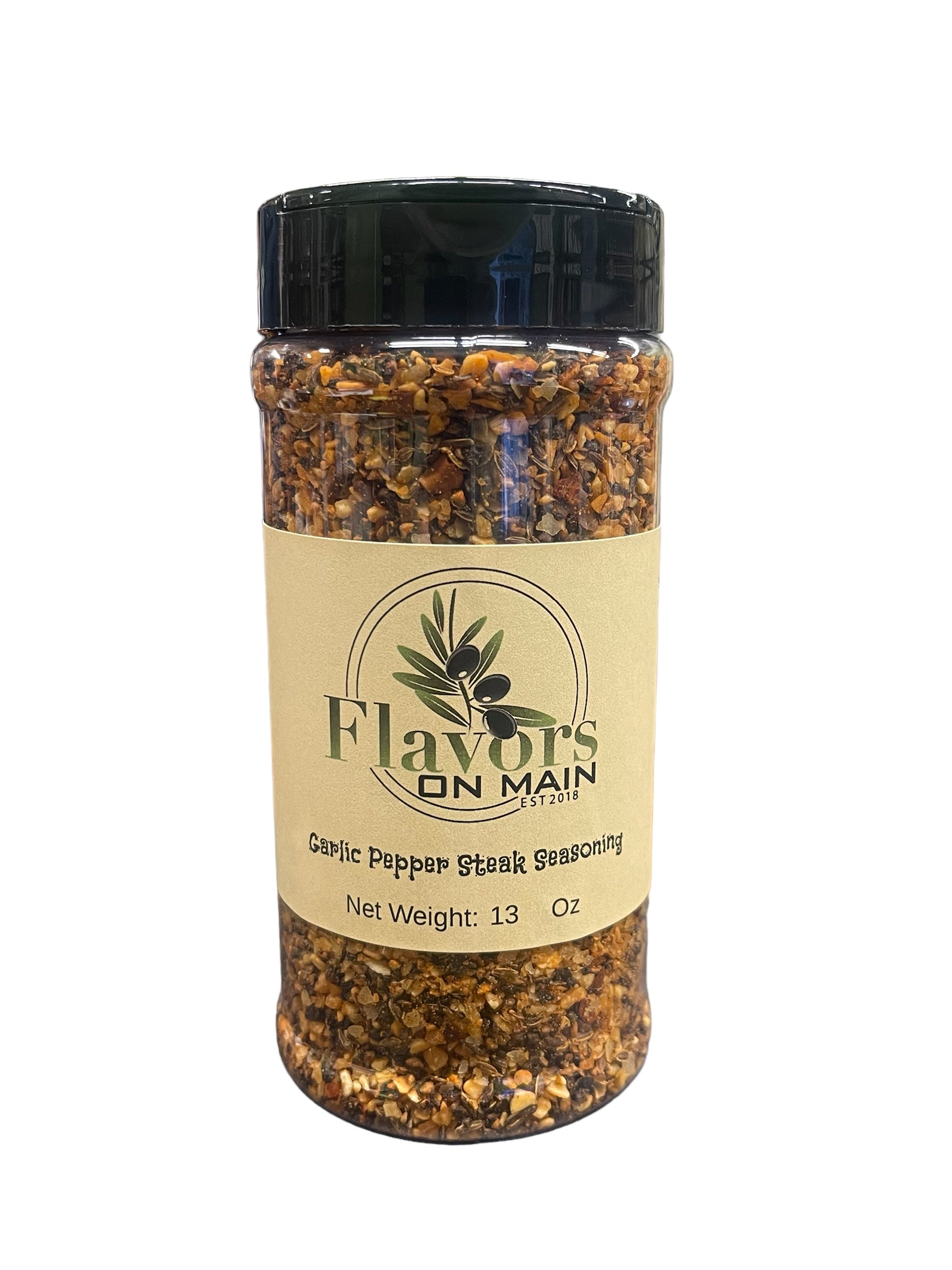 This Garlic Pepper Steak Seasoning is a wonderful blend of spices that enhance the flavor of fish, roast beef, pork chops, poultry, burgers, steak, or almost anything made on the grill. Common uses include marinades, meat rubs, or used as a finishing seasoning on steak fries or vegetables.