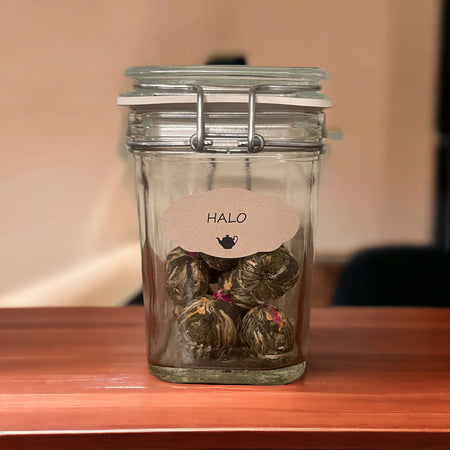A flowering white tea that is infused with blueberry and white peach essence and hand tied with a ring of amaranth and jasmine flowers. Filled with sweet and floral notes when steeped, this blooming tea is also a visual delight.