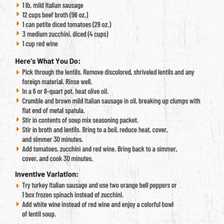 Indiana Harvest Sausage & Lentil Soup