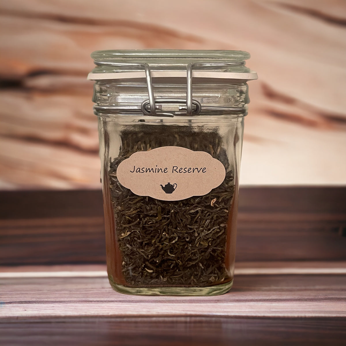 This select organic green tea has been repeatedly baked and scented with fresh and fragrant night-blooming jasmine blossoms.