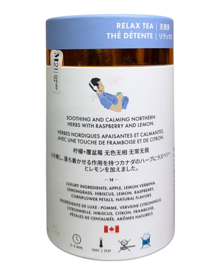Luxury Ingredients: apple, lemon verbena, lemongrass, hibiscus, lemon, raspberry, cornflower petals, natural flavors