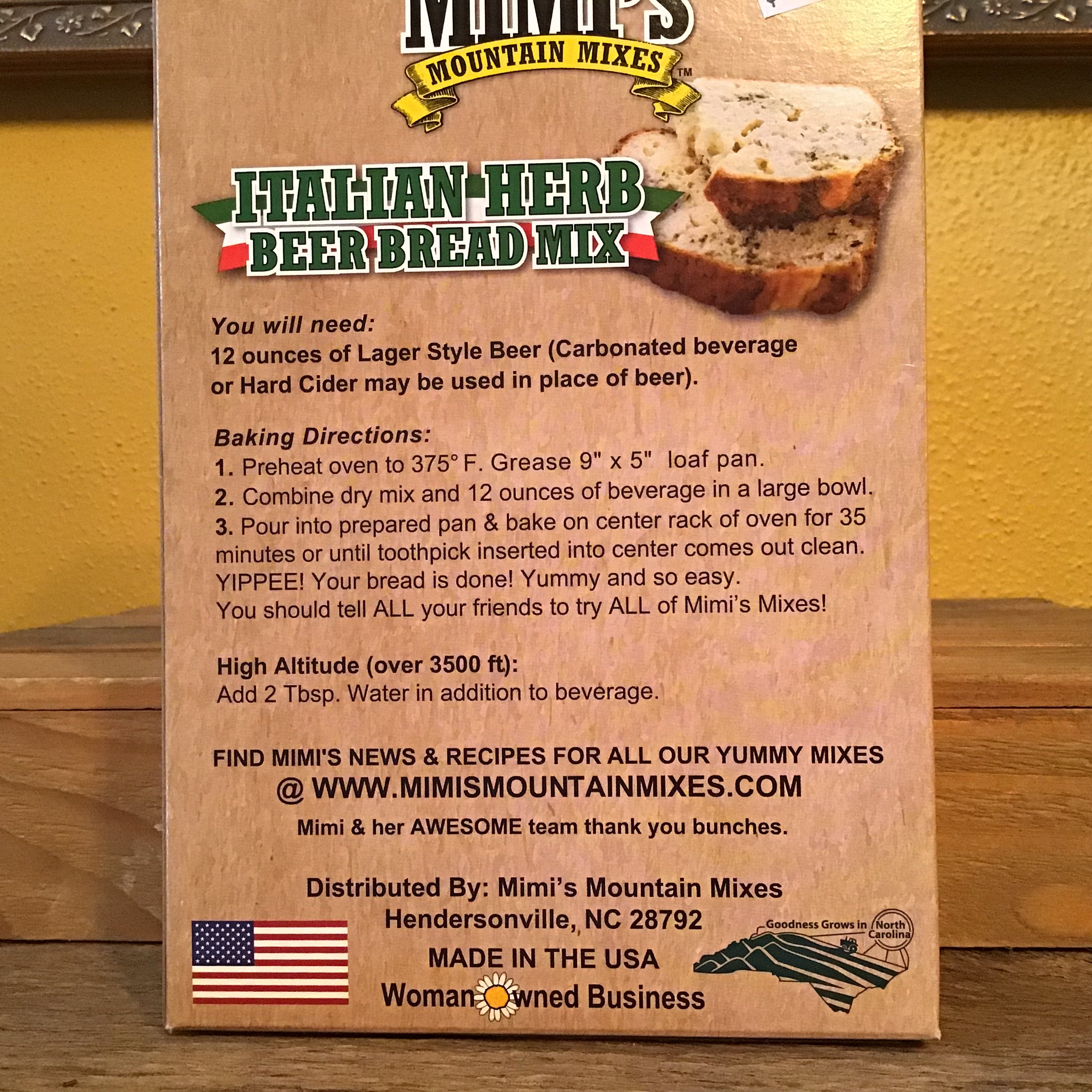 Italian Herb Beer Bread Mix from Mimi’s Mountain Mixes out of Hendersonville, NC.