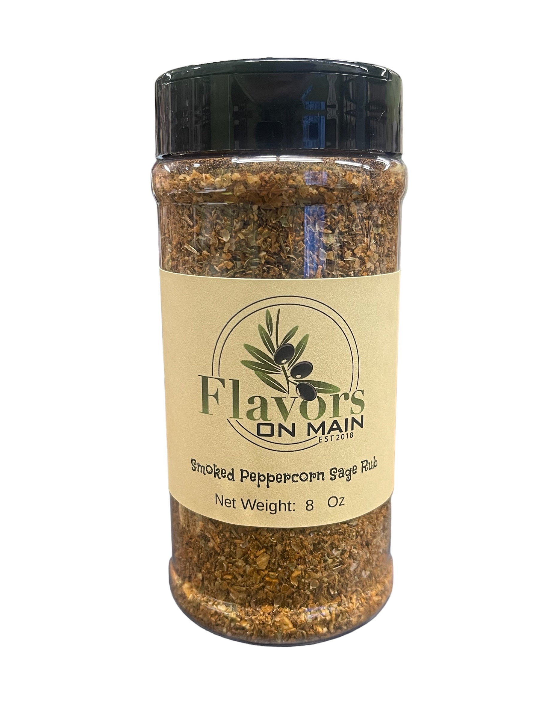 Blend Smoked Peppercorn Sage Rub directly on meats and roasts as a dry rub, or mixed with other marinades or oil. Use for pork chops, roasted pork loin, slow-cooked pork shoulder, chicken, turkey, or any game bird. Also compliments au gratin potatoes, potato casseroles or stuffing recipes.