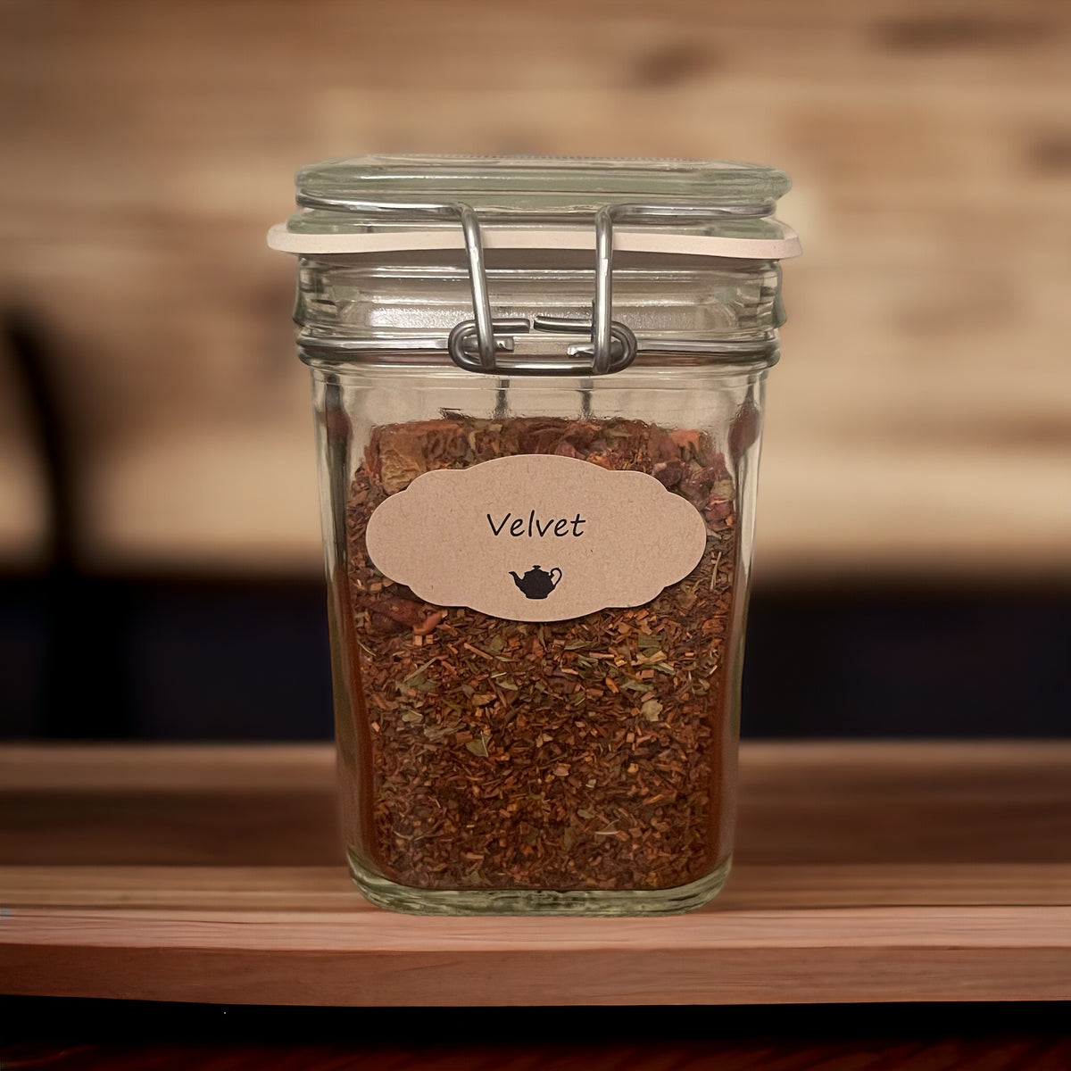 Sweet enticing chocolate swimming in a deep velvety base of organic rooibos and refreshing mint leaves.